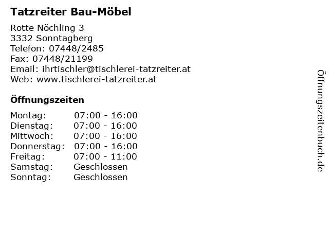 | Öffnungszeiten Tatzreiter Bau-Möbel in Sonntagberg anzeigen | |