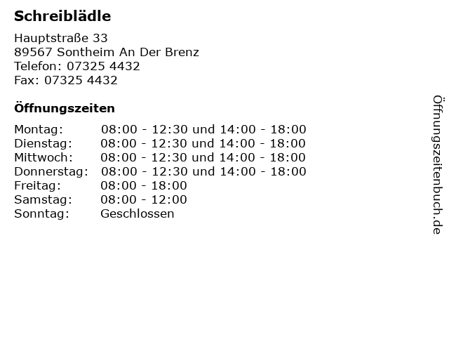 | Öffnungszeiten Schreiblädle in Sontheim An Der Brenz anzeigen | |
