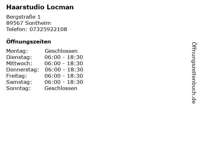 | Öffnungszeiten Haarstudio Locman in Sontheim anzeigen | |