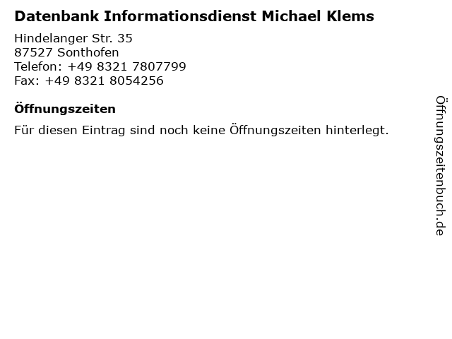 | Datenbank Informationsdienst Michael Klems anrufen | |