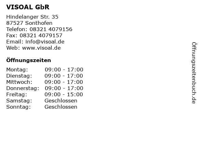| Öffnungszeiten VISOAL GbR in Sonthofen anzeigen | |