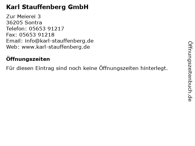 | Öffnungszeiten Karl Stauffenberg GmbH in Sontra anzeigen | |