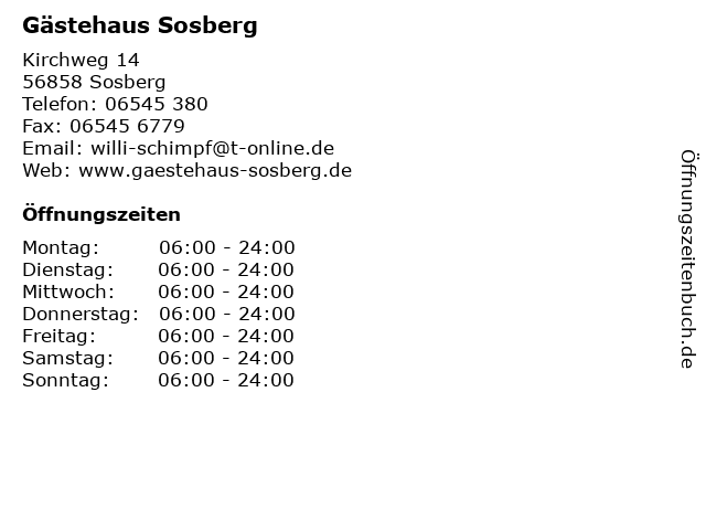| Öffnungszeiten Gästehaus Sosberg in Sosberg anzeigen | |