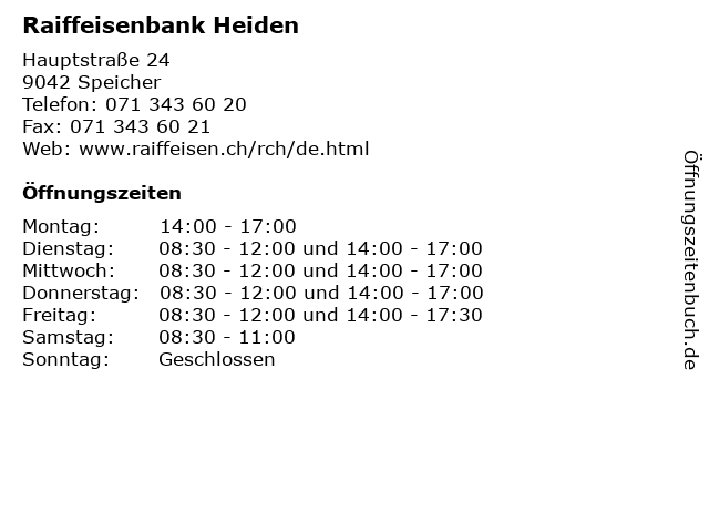 | Öffnungszeiten Raiffeisenbank Heiden in Speicher anzeigen | |