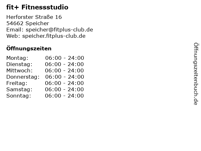 | Öffnungszeiten fit+ Fitnessstudio in Speicher anzeigen | |