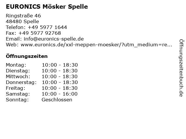| Öffnungszeiten EURONICS Mösker Spelle in Spelle anzeigen | |