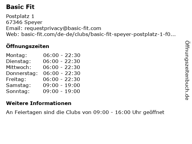 | Öffnungszeiten Basic Fit in Speyer anzeigen | |