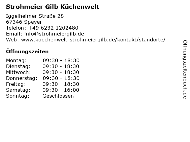 | Öffnungszeiten Strohmeier Gilb Küchenwelt in Speyer anzeigen | |