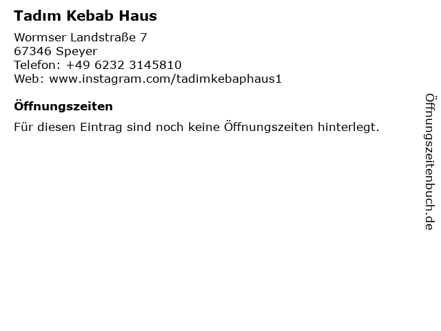 | Öffnungszeiten Tadım Kebab Haus in Speyer anzeigen | |