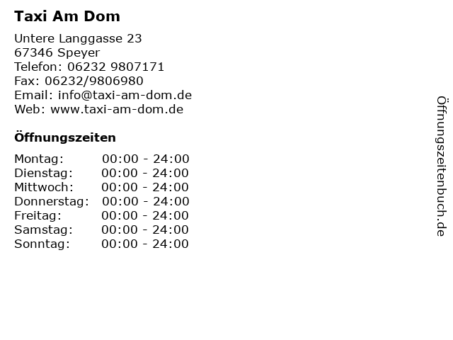 | Öffnungszeiten Taxi Am Dom in Speyer anzeigen | |