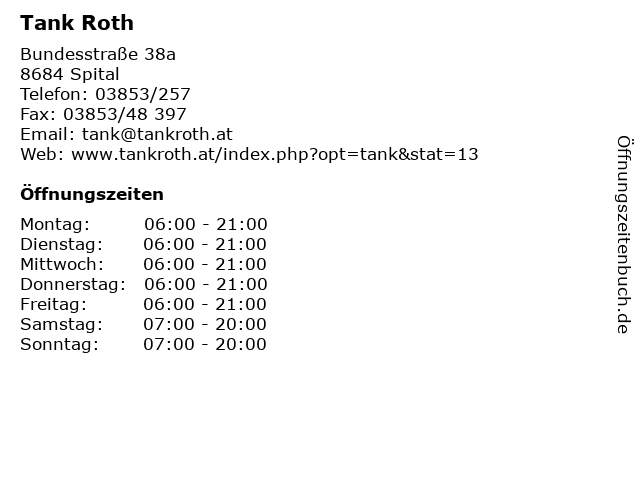 | Öffnungszeiten Tank Roth in Spital anzeigen | |