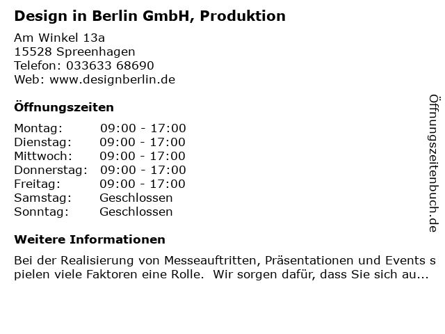 Branchen & Suchbegriffe zu Design in Berlin GmbH, Produktion:design, produktion |