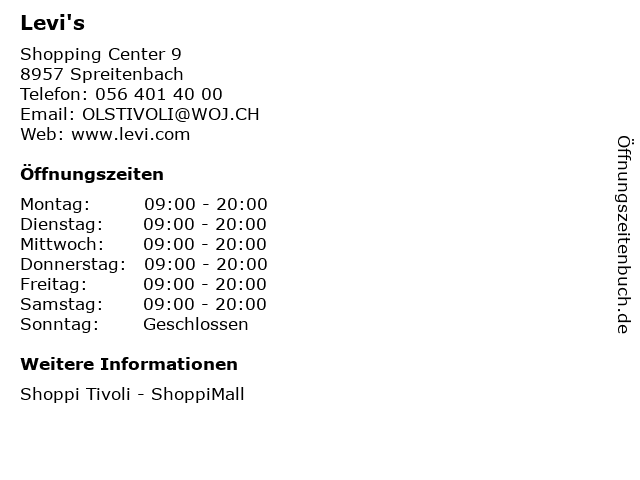 | Öffnungszeiten Levi's in Spreitenbach anzeigen | |
