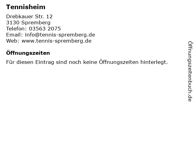 | Öffnungszeiten Tennisheim in Spremberg anzeigen | |