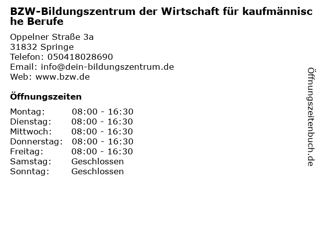 1 Bildungszentrum des Einzelhandels Niedersachsen BZE Berufsbildung (Entfernung: 2,01 km) Kurzer Ging 47, 31832 Springe 2 AWO - Interkulturelles Beratungs- und Bildungszentrum (IBBZ) (Entfernung: 15,04 km) Haupstr. 7, 31008 Elze 6 |