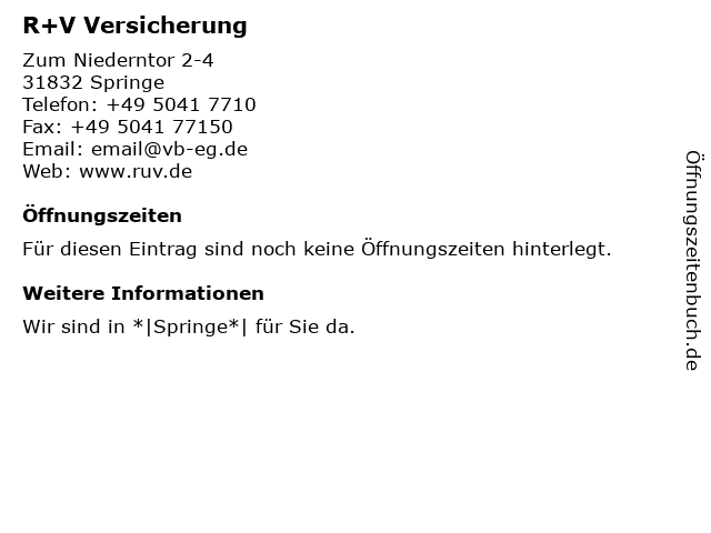 | Öffnungszeiten R+V Versicherung in Springe anzeigen | |