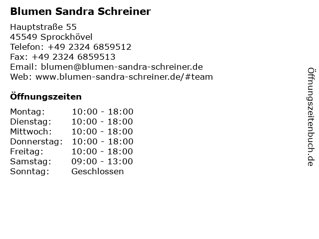 | Öffnungszeiten Blumen Sandra Schreiner in Sprockhövel anzeigen | |