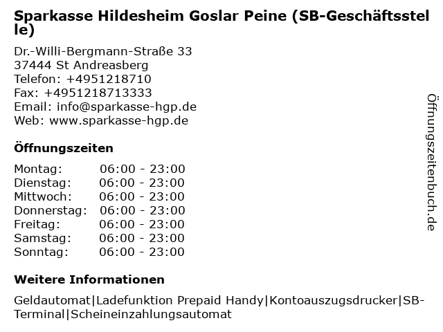 Branchen & Suchbegriffe zu Sparkasse Hildesheim Goslar Peine (SB-Filiale):goslar, peine, sb, sparkasse |