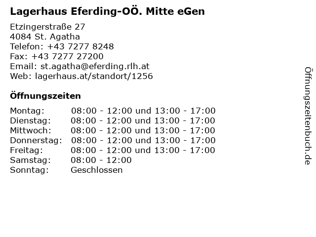 4 Raiffeisen Lagerhaus St.Agatha - Genol Tankstelle (Entfernung: 0,00 km) Etzingerstraße 27, 4084 St.Agatha 5 Sparkasse Eferding-Peuerbach-Waizenkirchen - (Bankomat Geschäftsstelle) (Entfernung: 0,49 km) Stauffgasse 11, 4084 St. Agatha 6 |