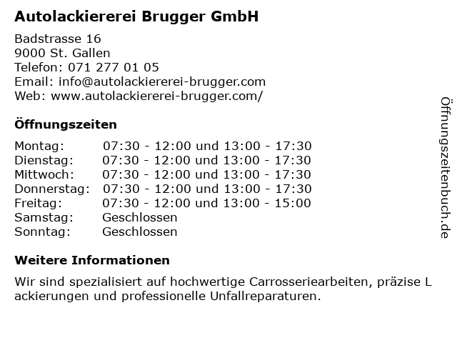 Branchen & Suchbegriffe zu Autolackiererei Brugger GmbH:autolackiererei, autoteile und -zubehör, autowerkstatt, brugger, gerätereparaturdienst, geschäft für autoreifen, oldtimer-händler |
