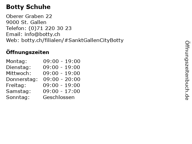 | Öffnungszeiten Botty Schuhe in St. Gallen anzeigen | |