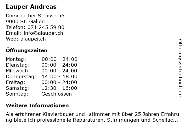 | Öffnungszeiten Lauper Andreas in St. Gallen anzeigen | |