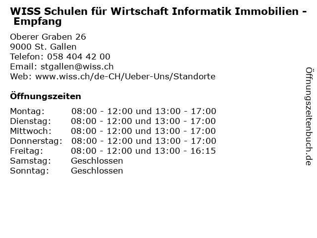| Freitag | 08:00-12:00 und 13:00-16:15 |