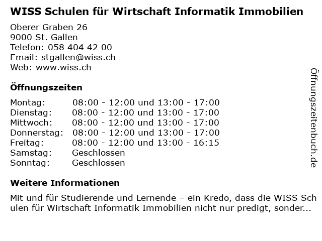 | Freitag | 08:00-12:00 und 13:00-16:15 |