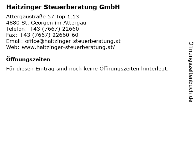 1 Attergau-Treuhand Spitzer Unternehmens- und Steuerberatung GmbH (Entfernung: 0,50 km) Attergaustraße 8, 4880 Sankt Georgen im Attergau 6 |