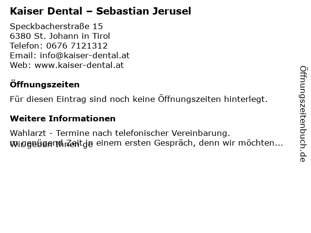 | Kaiser Dental – Sebastian Jerusel anrufen | |