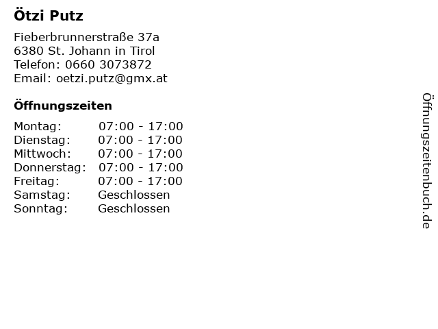 | Öffnungszeiten Ötzi Putz in St. Johann in Tirol anzeigen | |