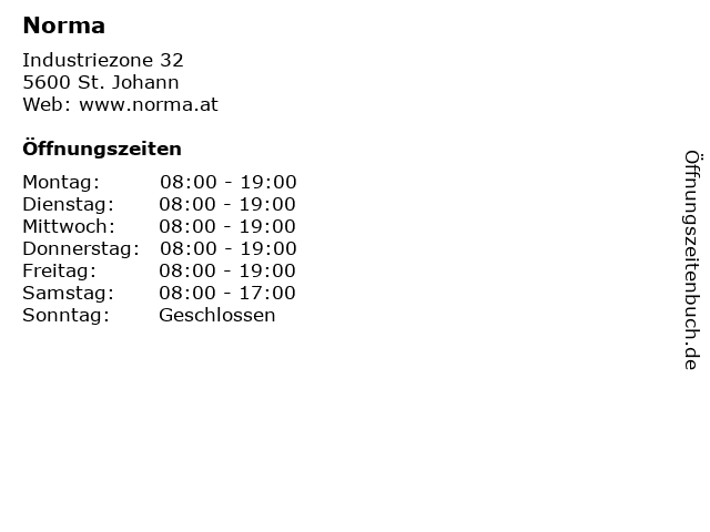 | Öffnungszeiten Norma in St. Johann anzeigen | |