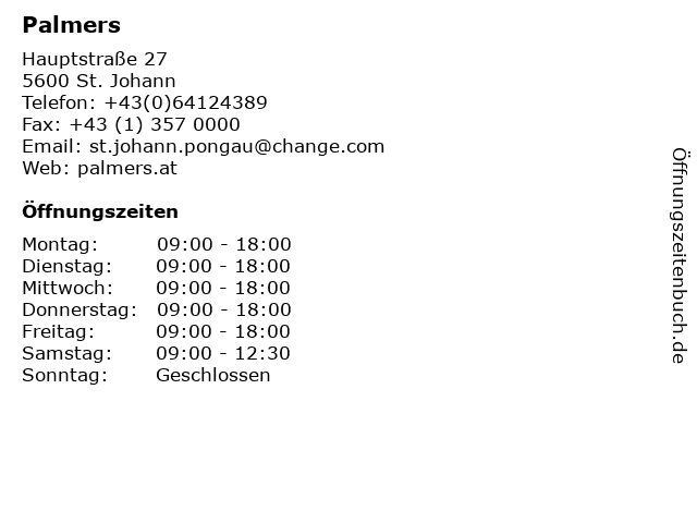 | Öffnungszeiten Palmers in St. Johann anzeigen | |