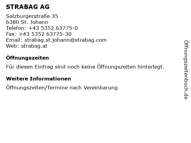 | Öffnungszeiten STRABAG AG in St. Johann anzeigen | |