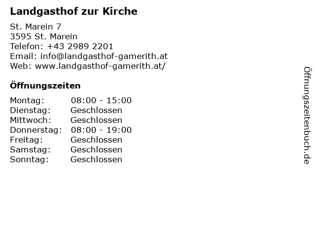 | Öffnungszeiten Landgasthof zur Kirche in St. Marein anzeigen | |