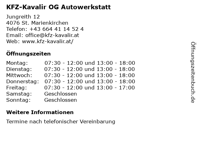 | Freitag | 07:30-12:00 und 13:00-17:00 |