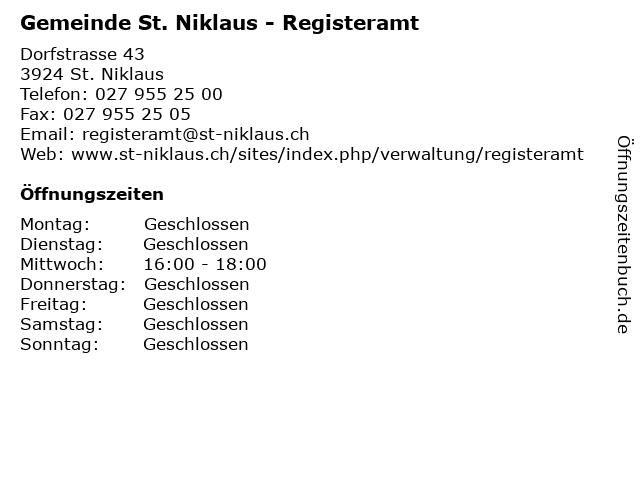 Branchen & Suchbegriffe zu Gemeinde St. Niklaus - Registeramt:amt, behörde, gemeinde, niklaus, registeramt, verwaltung |