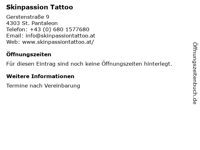 | Telefonnummer Skinpassion Tattoo in St. Pantaleon (+43 (0) 680 1577680) anrufen | |