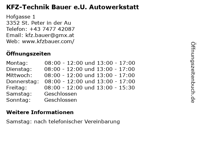 1 Kurt Ruhringer e.U. Autowerkstatt (Entfernung: 0,85 km) Dr-Hans-Blank-Weg 7, 3352 St. Peter in der Au 6 |