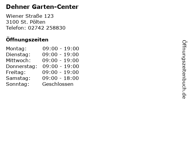 | Öffnungszeiten Dehner Garten-Center in St. Pölten anzeigen | |