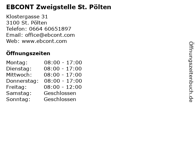 Branchen & Suchbegriffe zu EBCONT Zweigstelle St. Pölten:ebcont, pölten, zweigstelle |