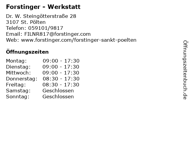 | Öffnungszeiten Forstinger - Werkstatt in St. Pölten anzeigen | |