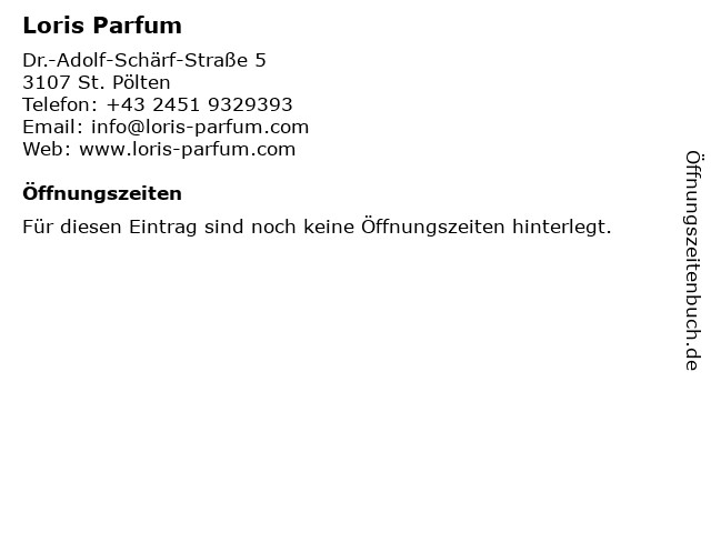 | Öffnungszeiten Loris Parfum in St. Pölten anzeigen | |
