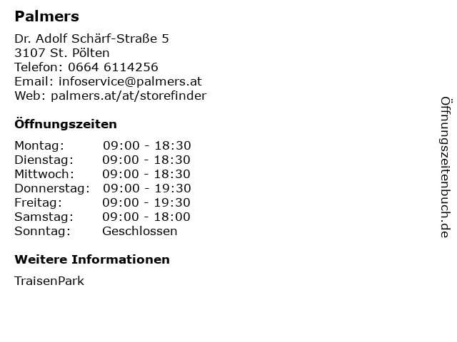 | Öffnungszeiten Palmers in St. Pölten anzeigen | |