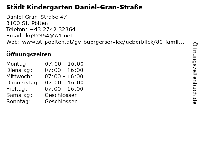 Branchen & Suchbegriffe zu Städt Kindergarten Daniel-Gran-Straße:daniel, familienzentrum, gran, kinderbetreuung, kindergarten, kita, straße, städt |