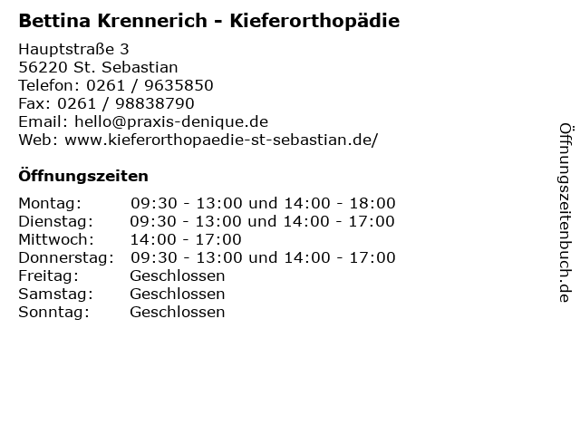 1 Frank Ulrich Raabe Zahnarzt für Kieferorthopädie (Entfernung: 0,02 km) Hauptstr. 5, 56220 Sankt Sebastian 2 Dr. med. Stefan Breuer & Bettina Zinkeisen-Breuer - Fachärzte für Innere und Allgemeinmedizin (Entfernung: 1,49 km) Bahnhofstr. 1, 56170 Bendorf 5 6 |
