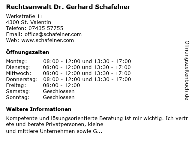 Branchen & Suchbegriffe zu Rechtsanwalt Dr. Gerhard Schafelner:dr., gerhard, rechtsanwalt, schafelner |