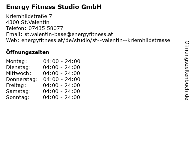Energy Fitness Studio GmbH in St.Valentin: Telefonnummer, Öffnungszeiten und Adresse