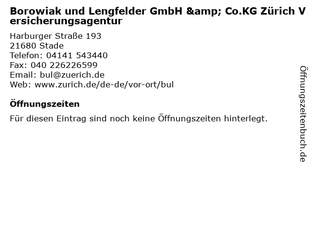 | Borowiak und Lengfelder GmbH & Co.KG Zürich Versicherungsagentur anrufen | |