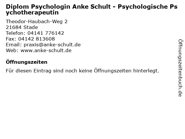 | Diplom Psychologin Anke Schult - Psychologische Psychotherapeutin anrufen | |